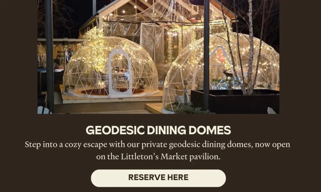 Because Winter’s not over yet… Introducing a new way to dine at Littleton’s, our cozy and private geodesic domes are now available for rent. Each heated dome features its own immersive theme – Greenhouse, Speakeasy, Paris Roses and By the Sea. Domes are available to reserve for $75, for 2 hours. Book your experience through the link in our bio!